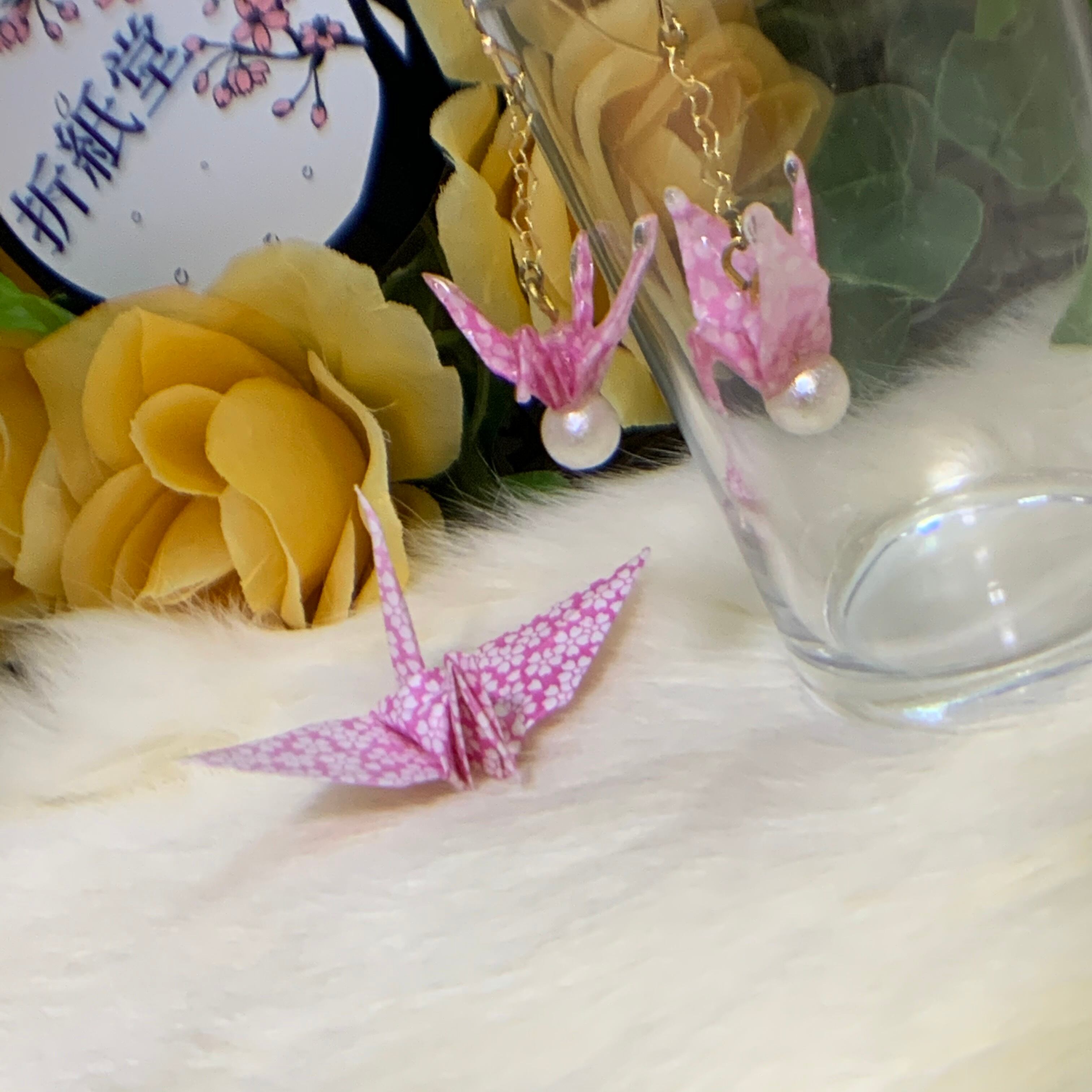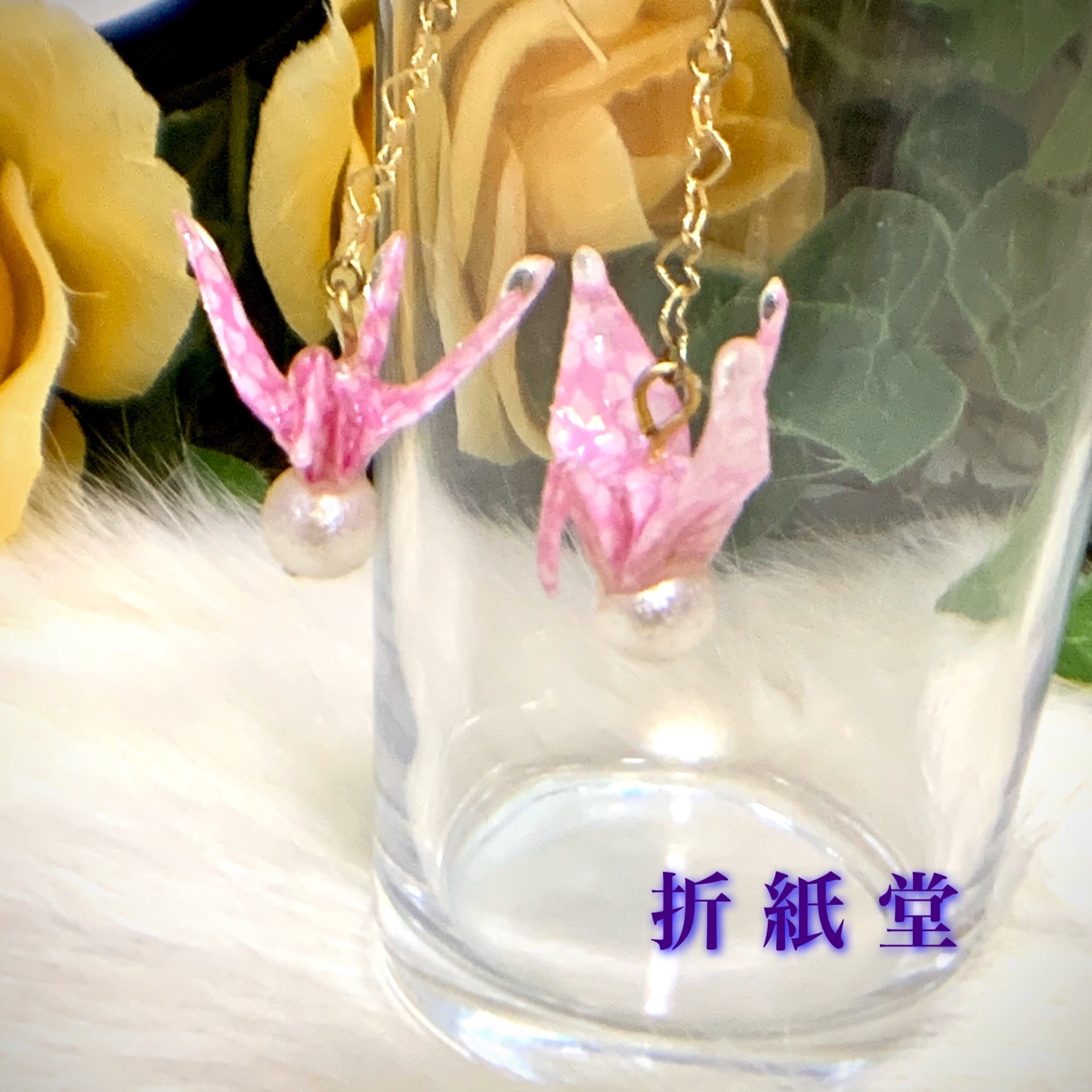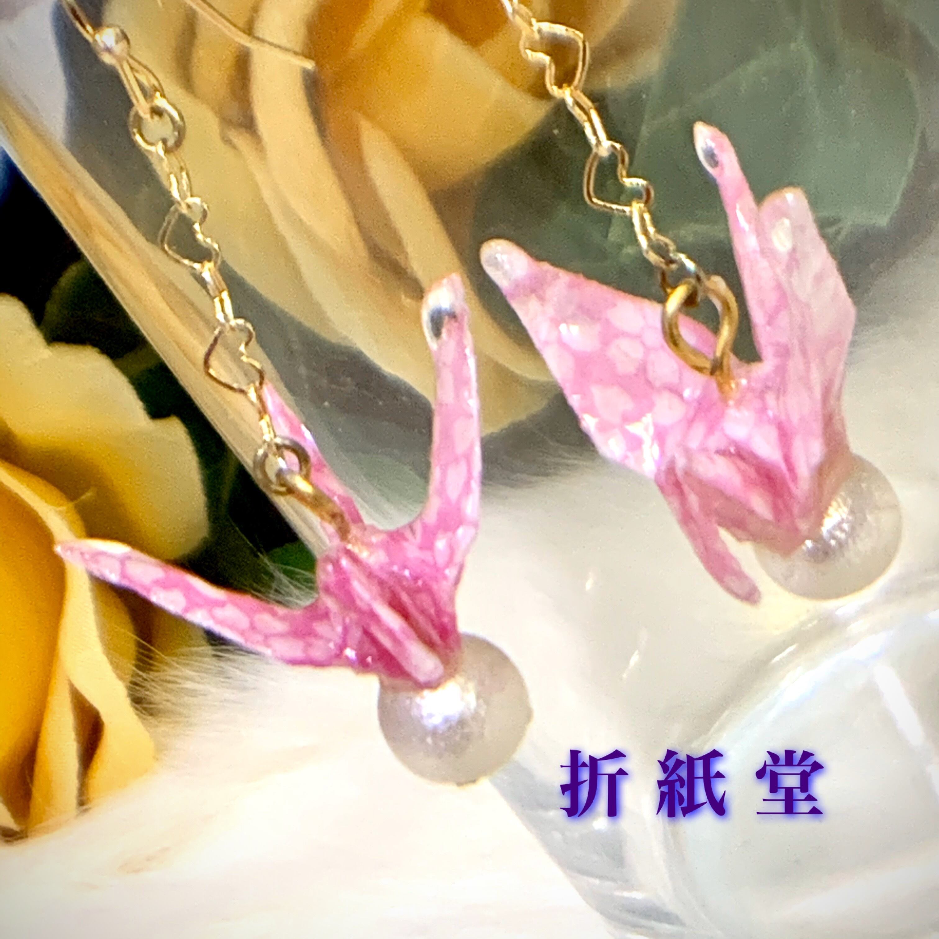 和紙・千代紙で折った折り鶴ハンドメイドのピアス・イヤリングです。