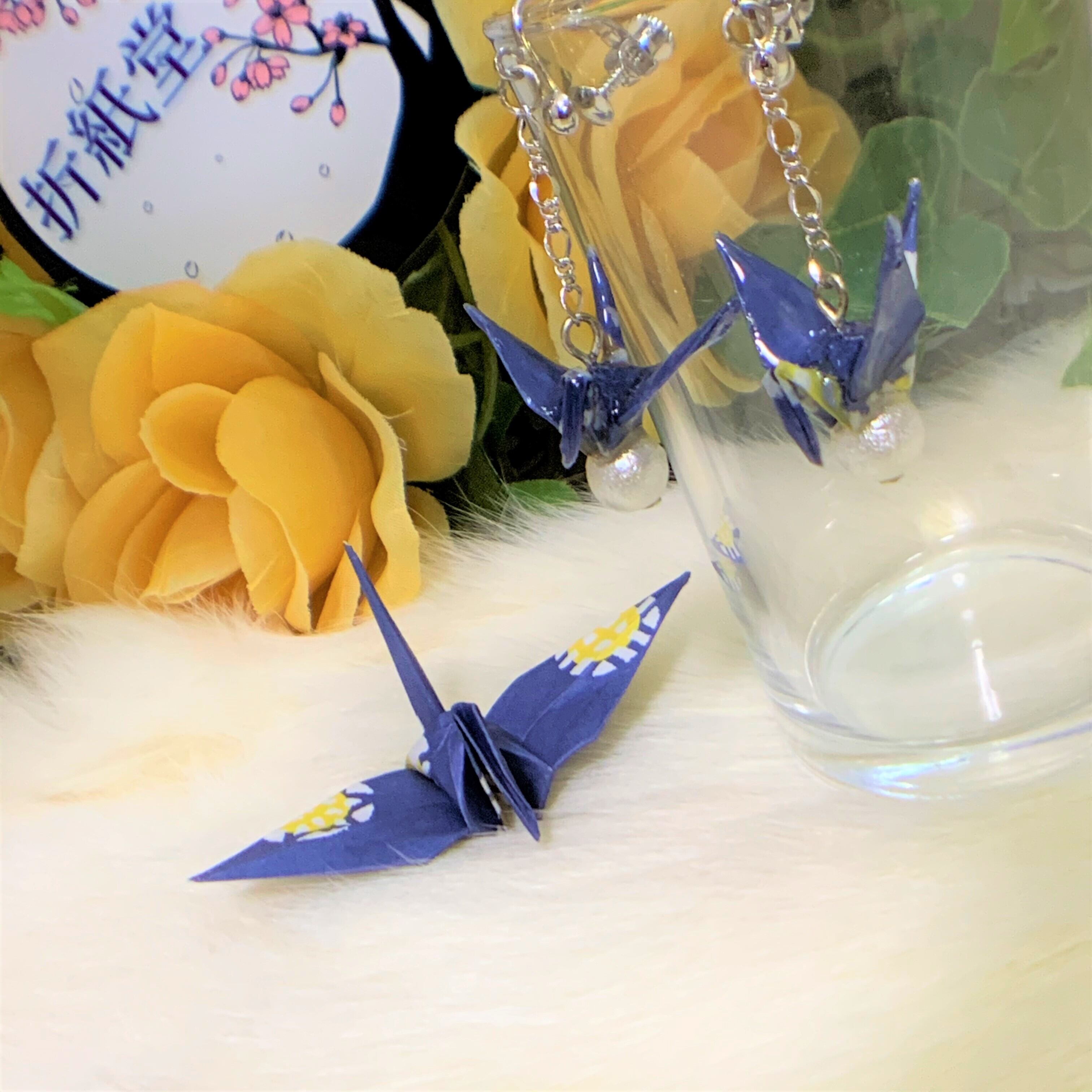 和紙・千代紙で折った折り鶴ハンドメイドのピアス・イヤリングです。