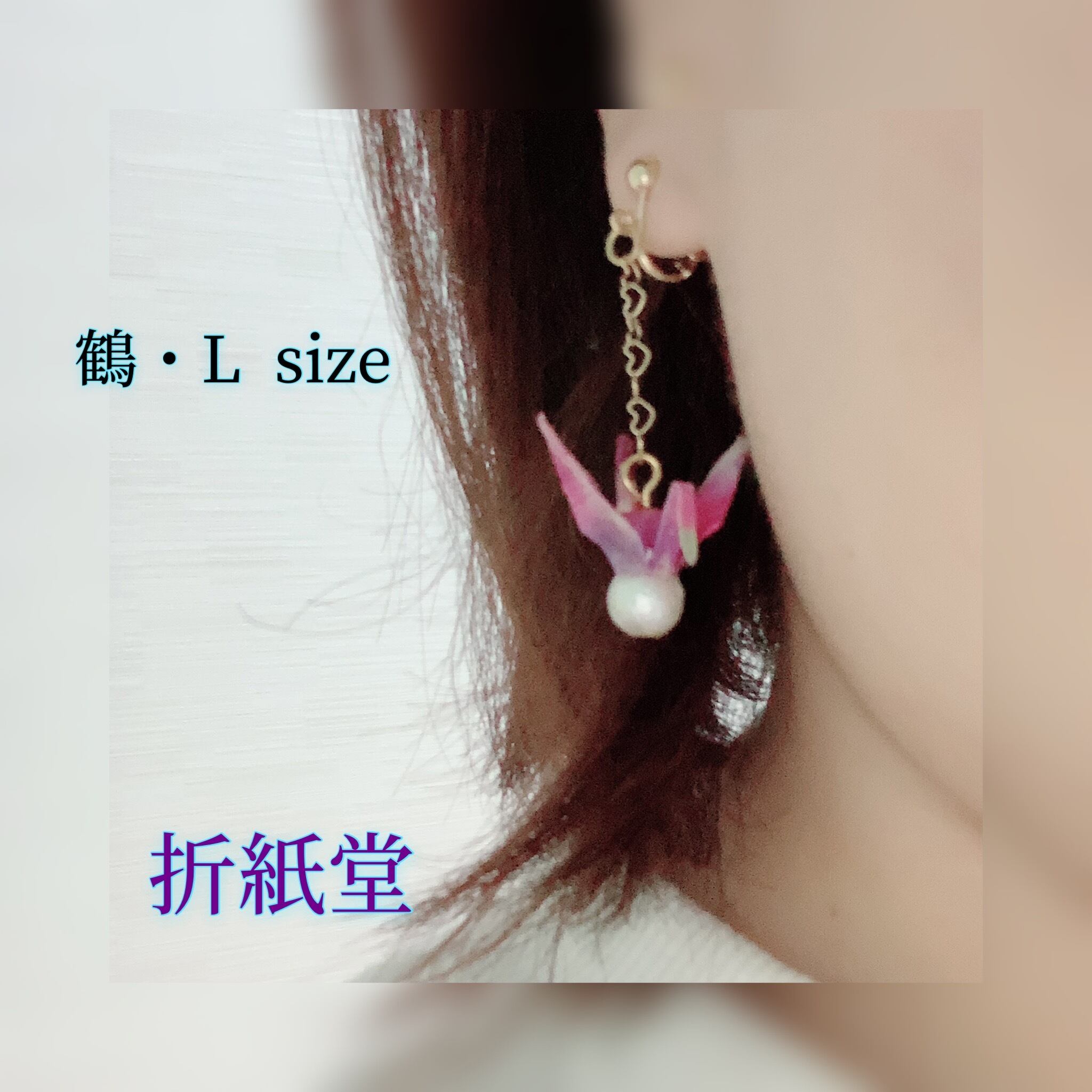 和紙・千代紙で折った折り鶴ハンドメイドのピアス・イヤリングです。