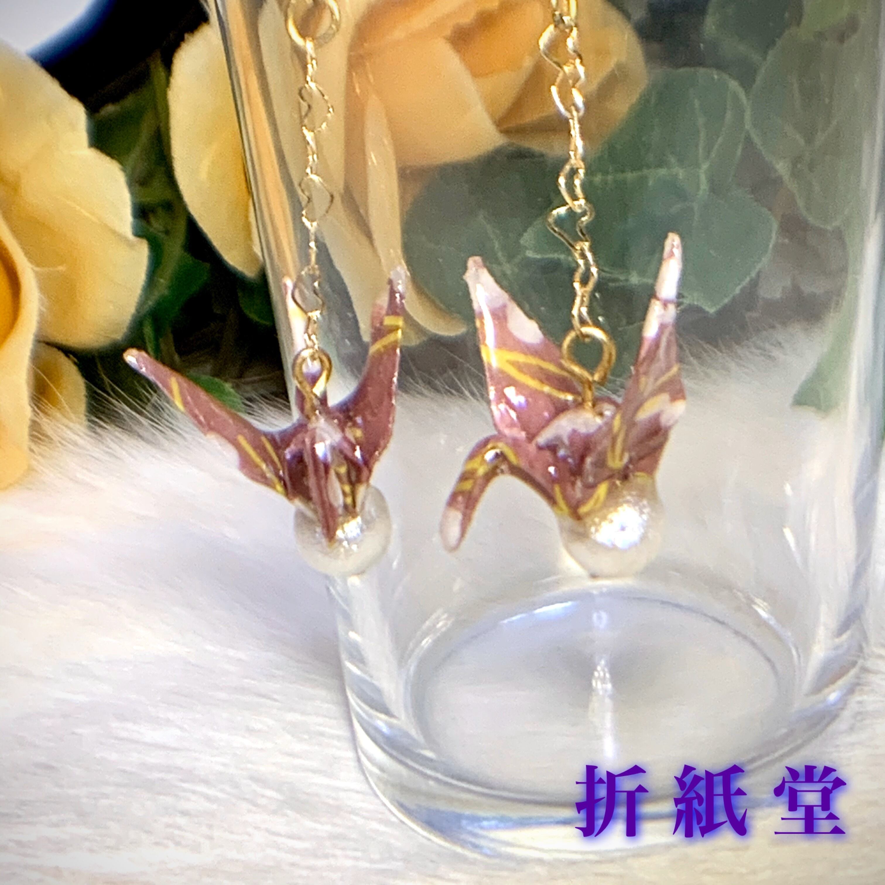 和紙・千代紙で折った折り鶴ハンドメイドのピアス・イヤリングです。