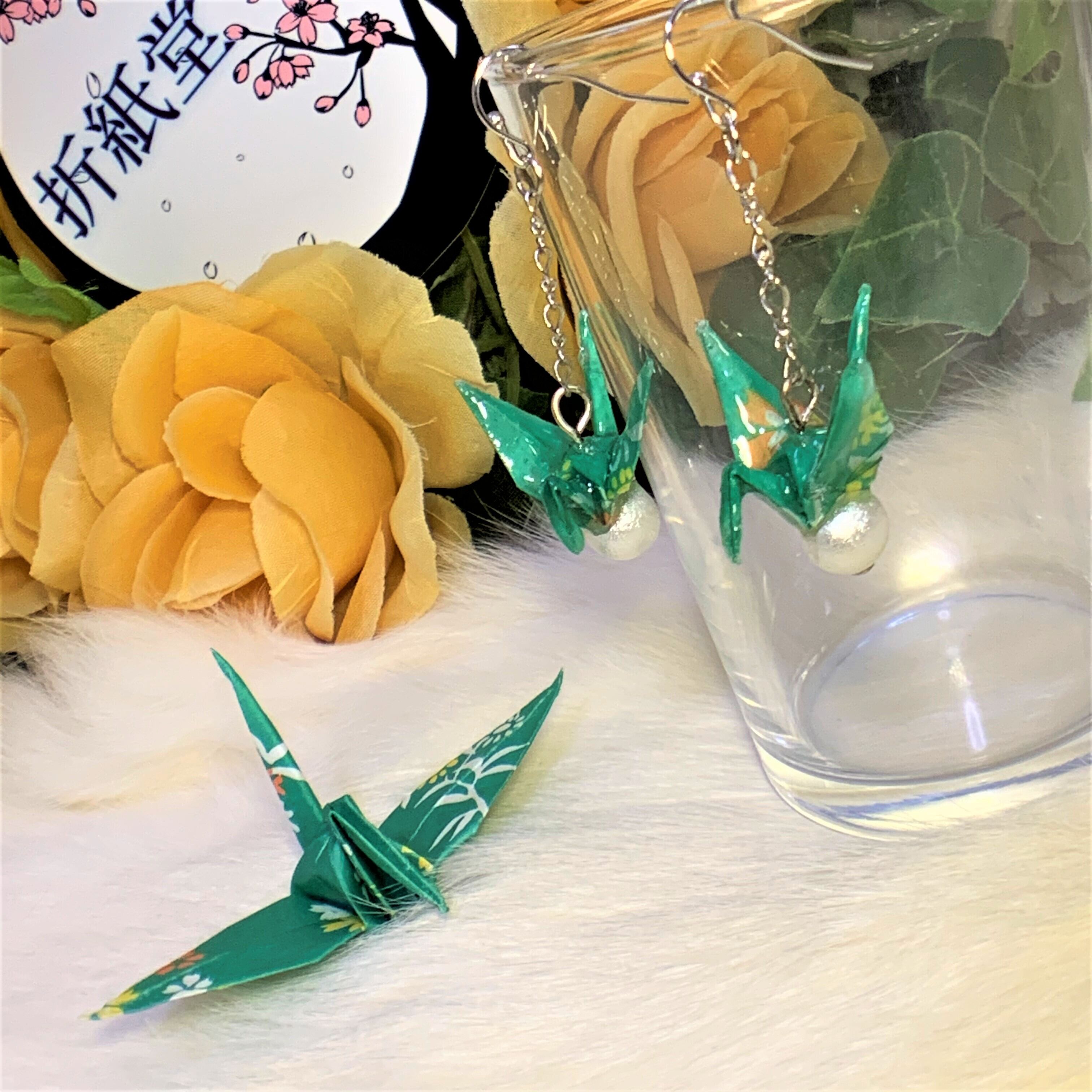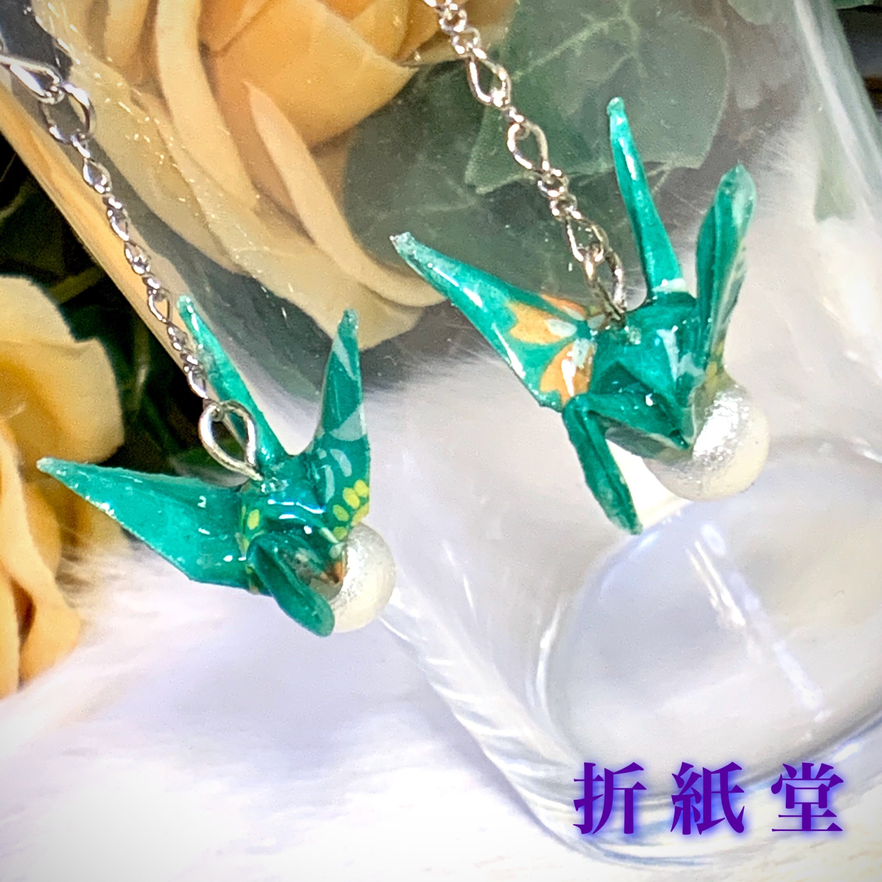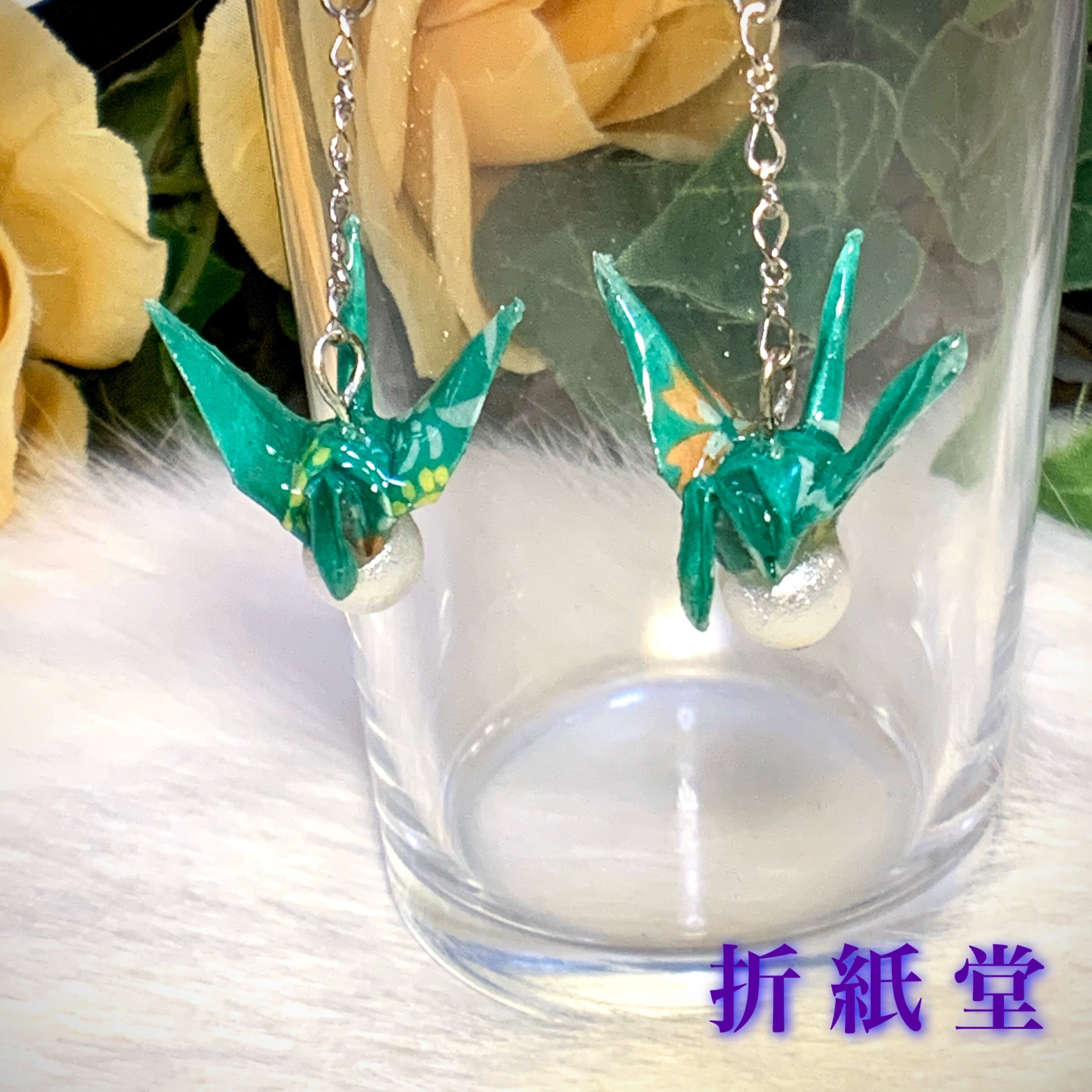和紙・千代紙で折った折り鶴ハンドメイドのピアス・イヤリングです。