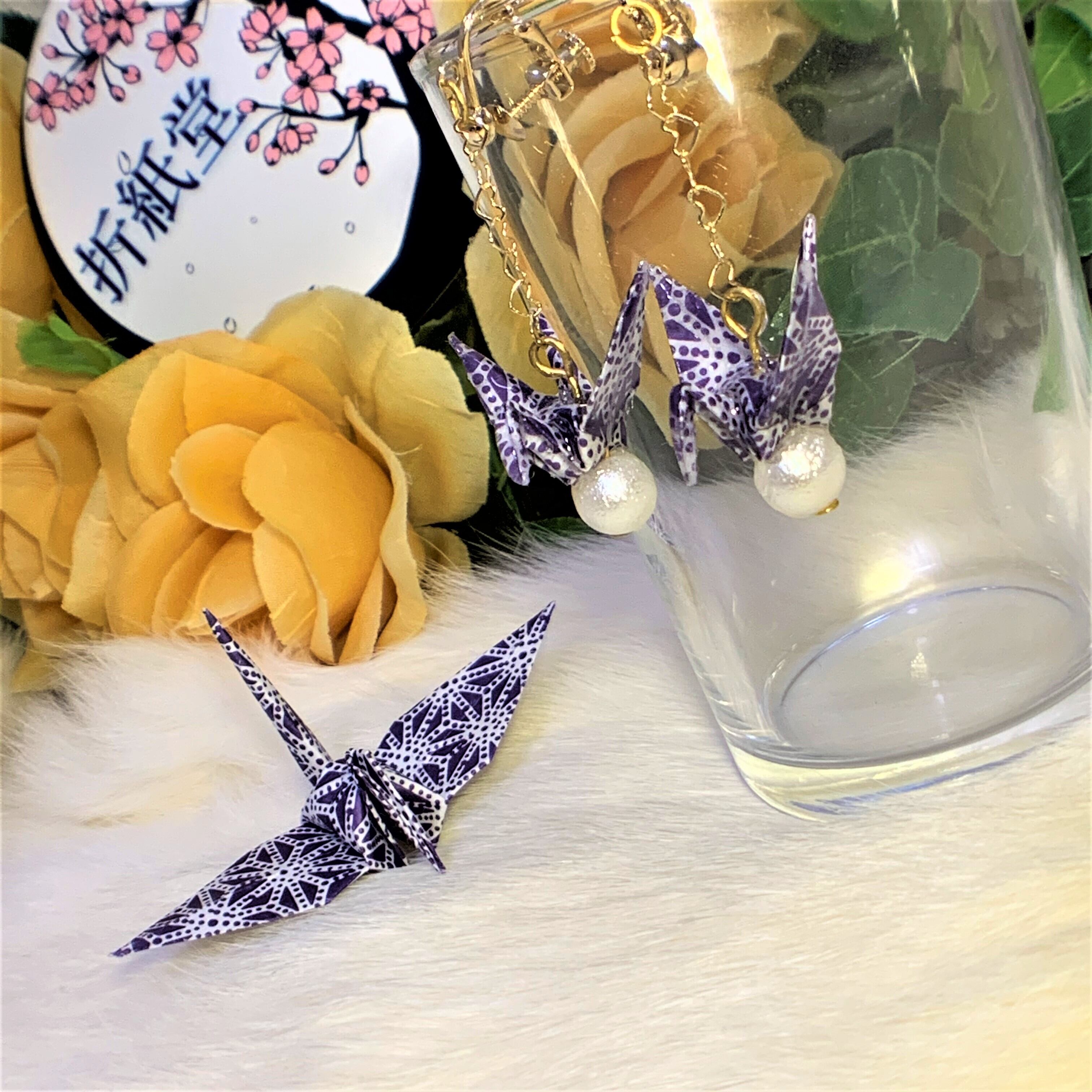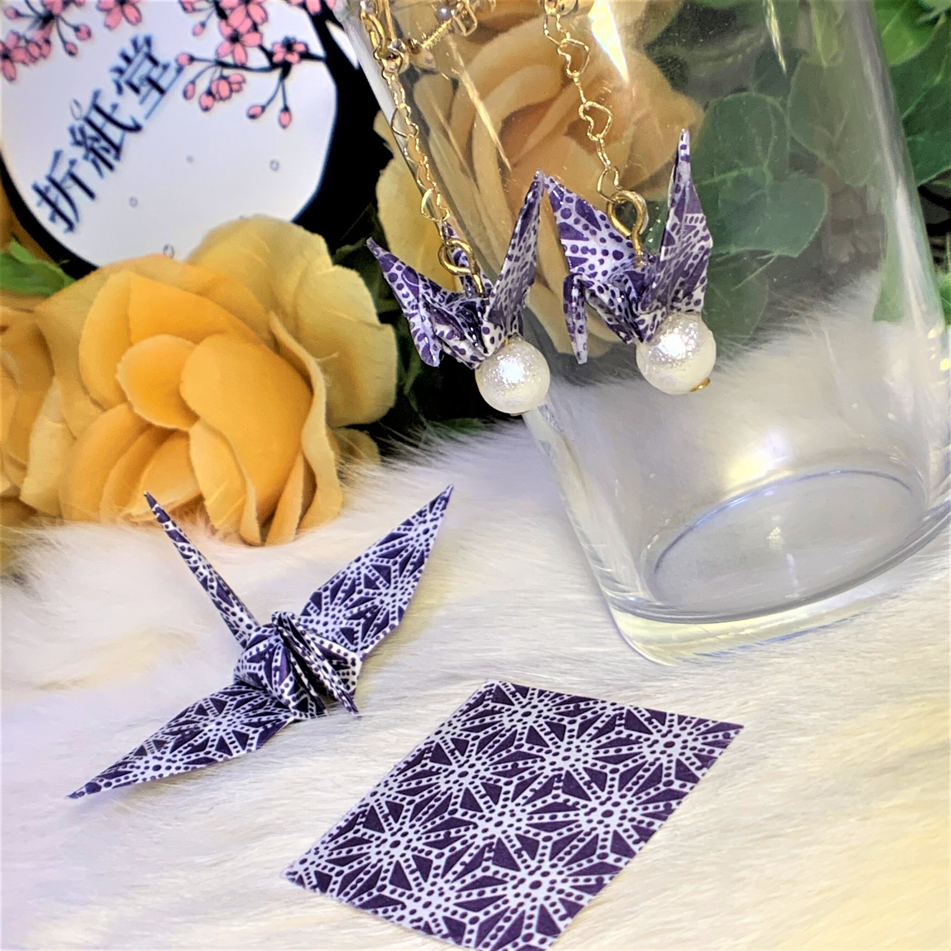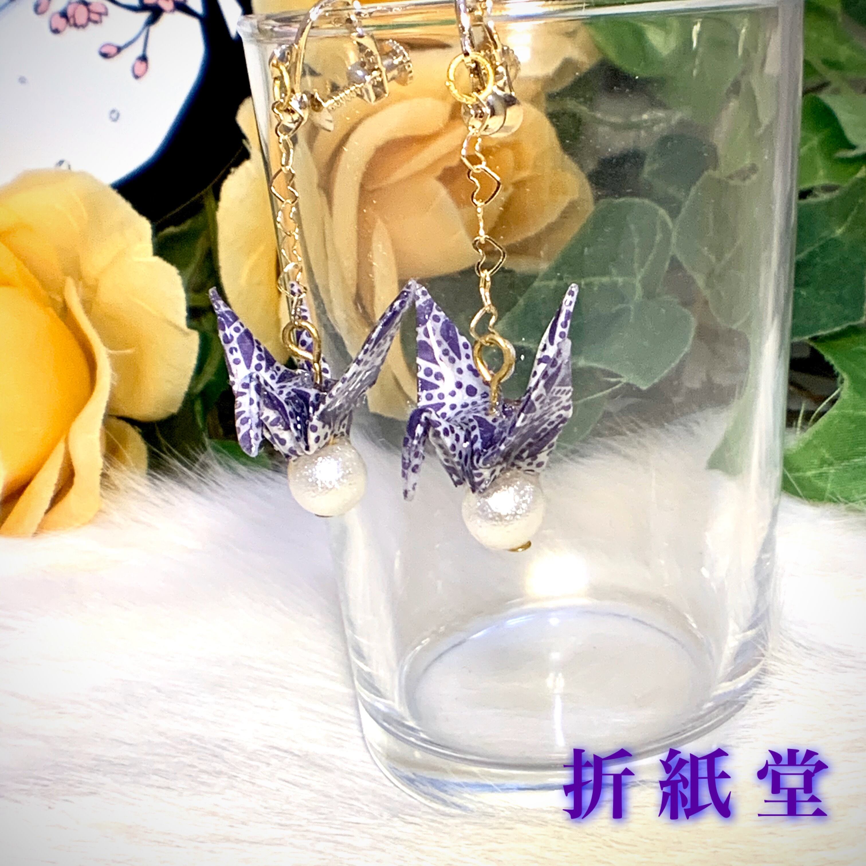 和紙・千代紙で折った折り鶴ハンドメイドのピアス・イヤリングです。