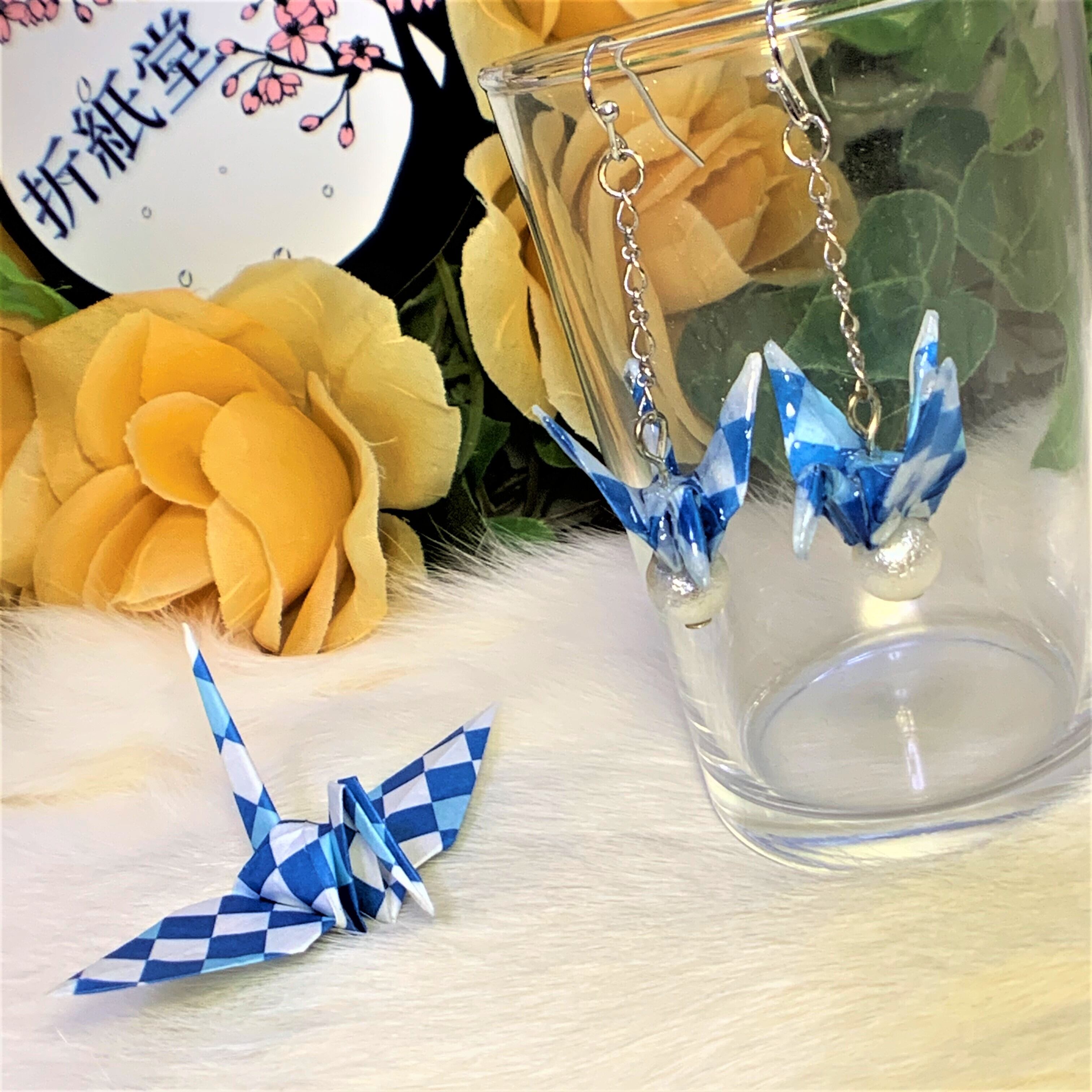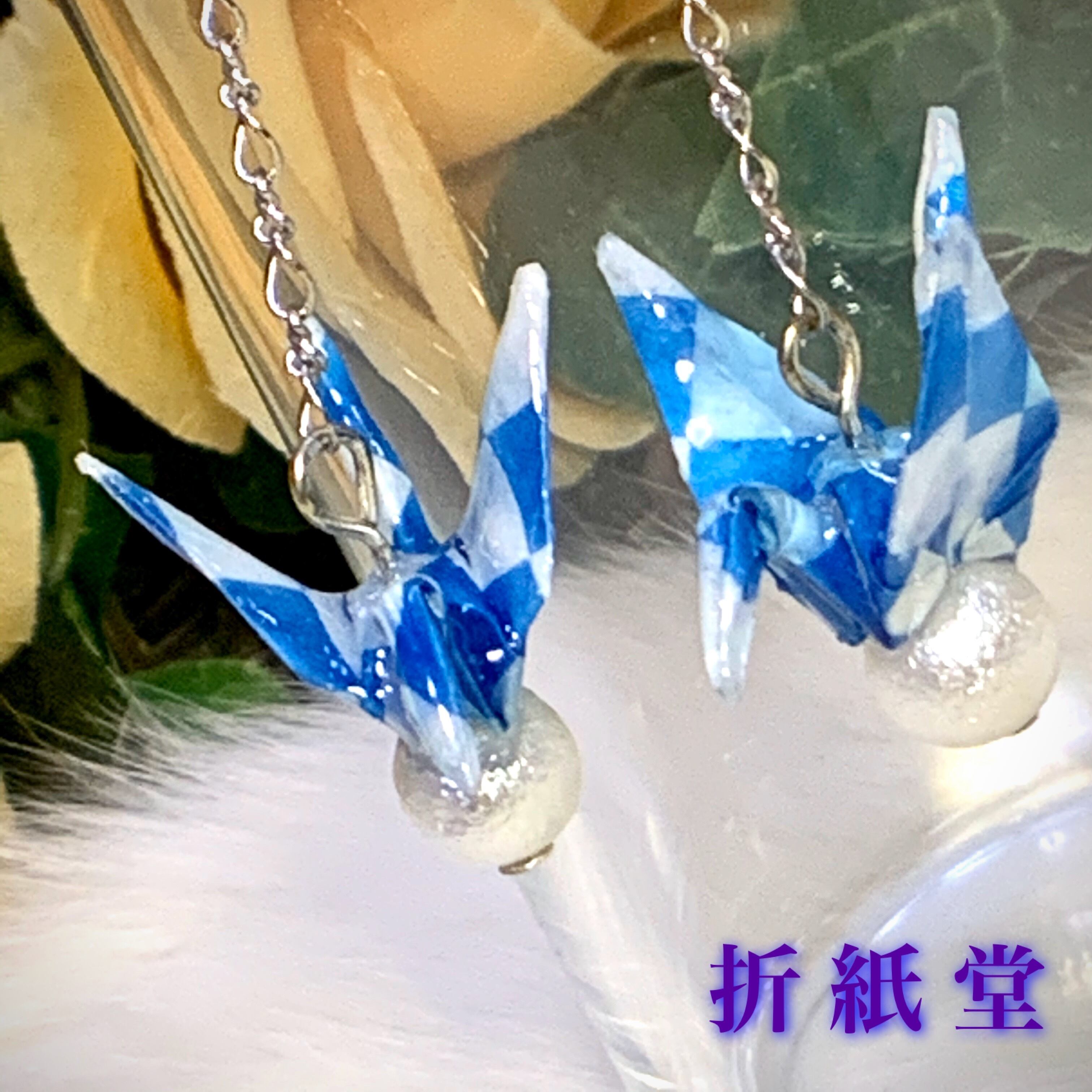 和紙・千代紙で折った折り鶴ハンドメイドのピアス・イヤリングです。