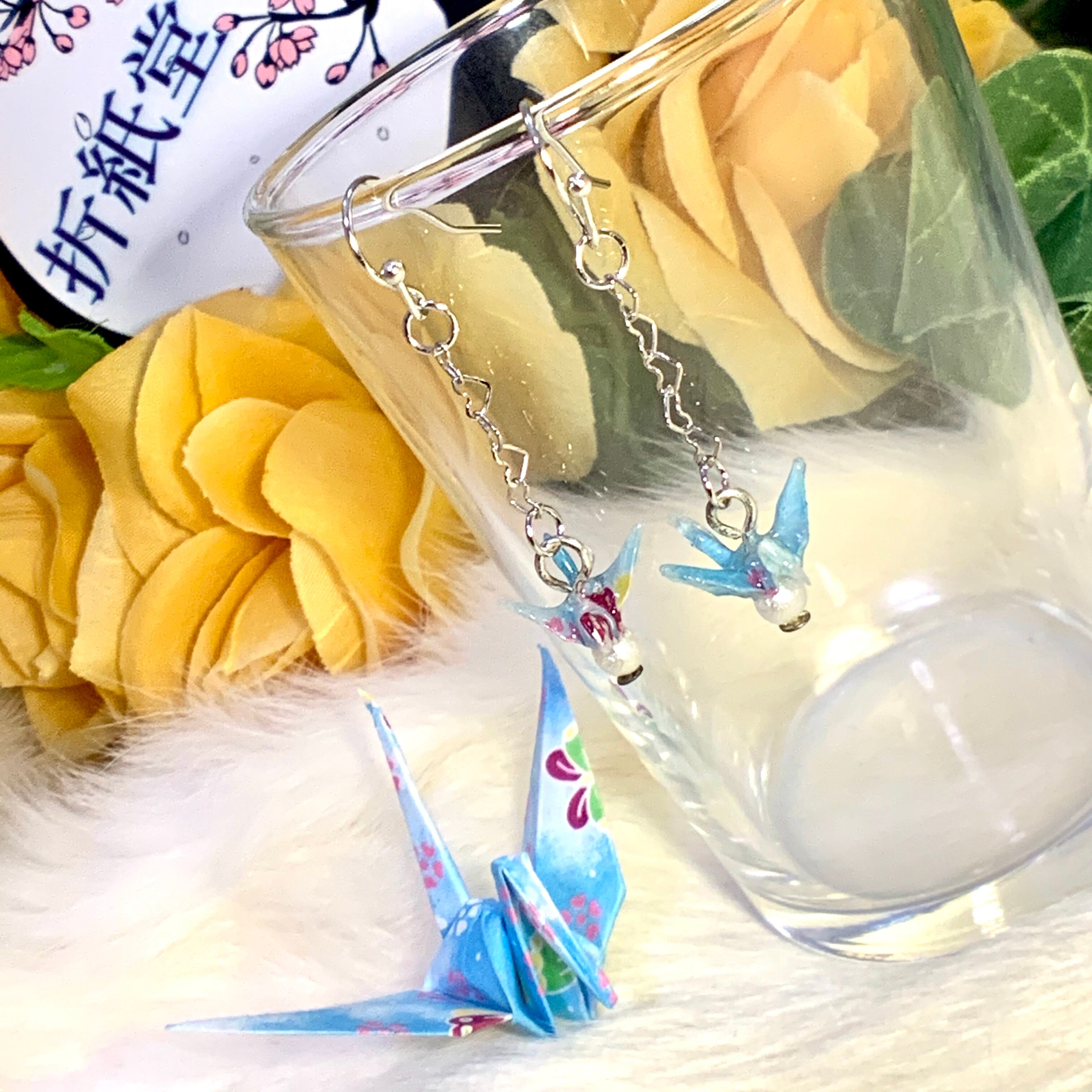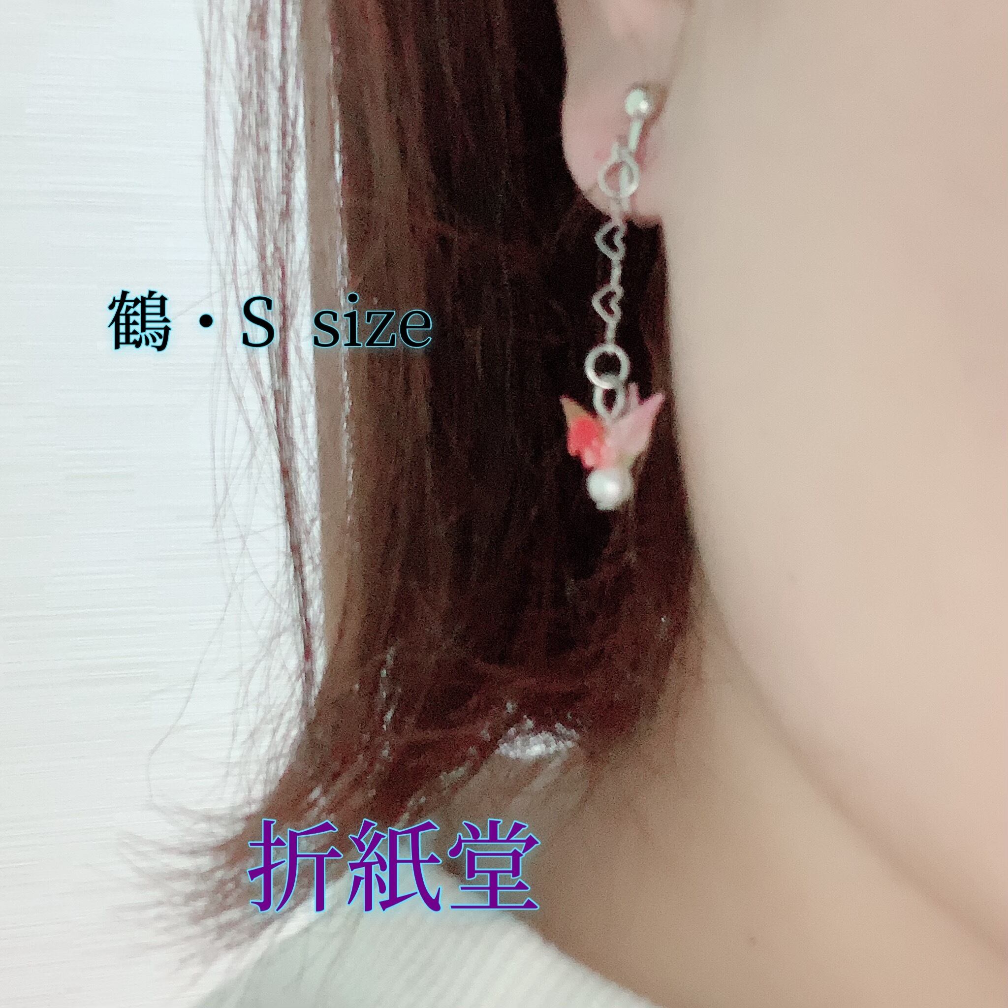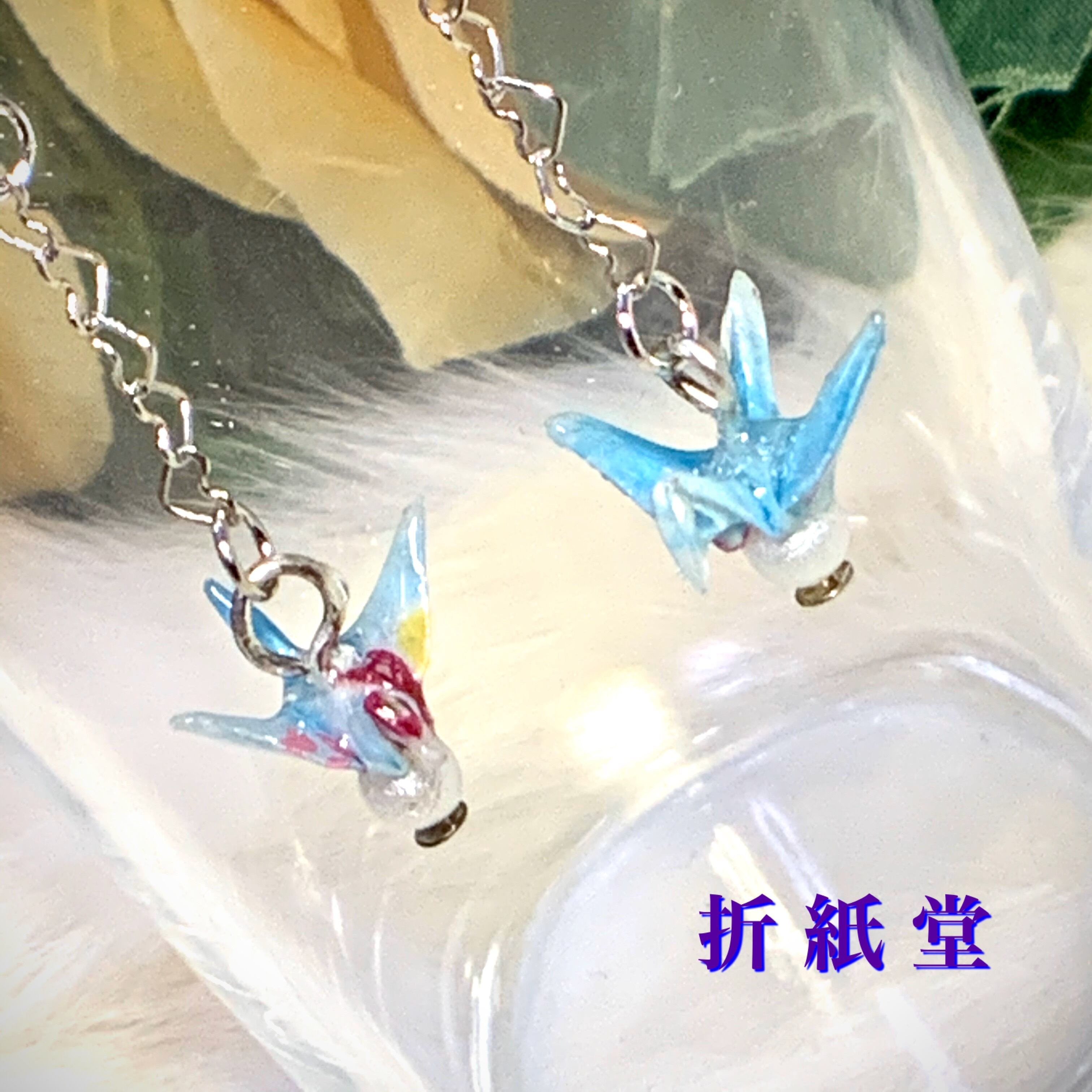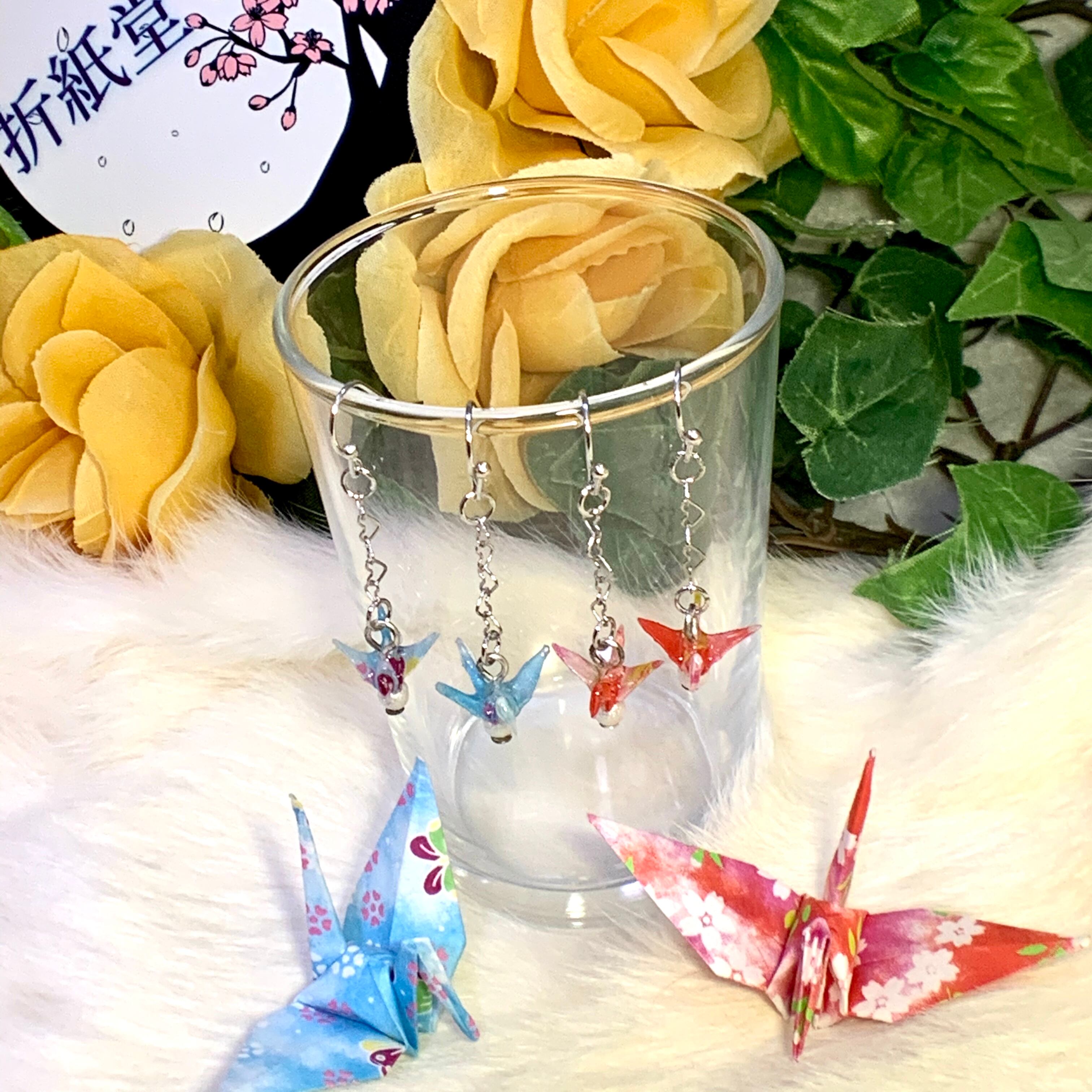 和紙・千代紙で折った折り鶴ハンドメイドのピアス・イヤリングです。