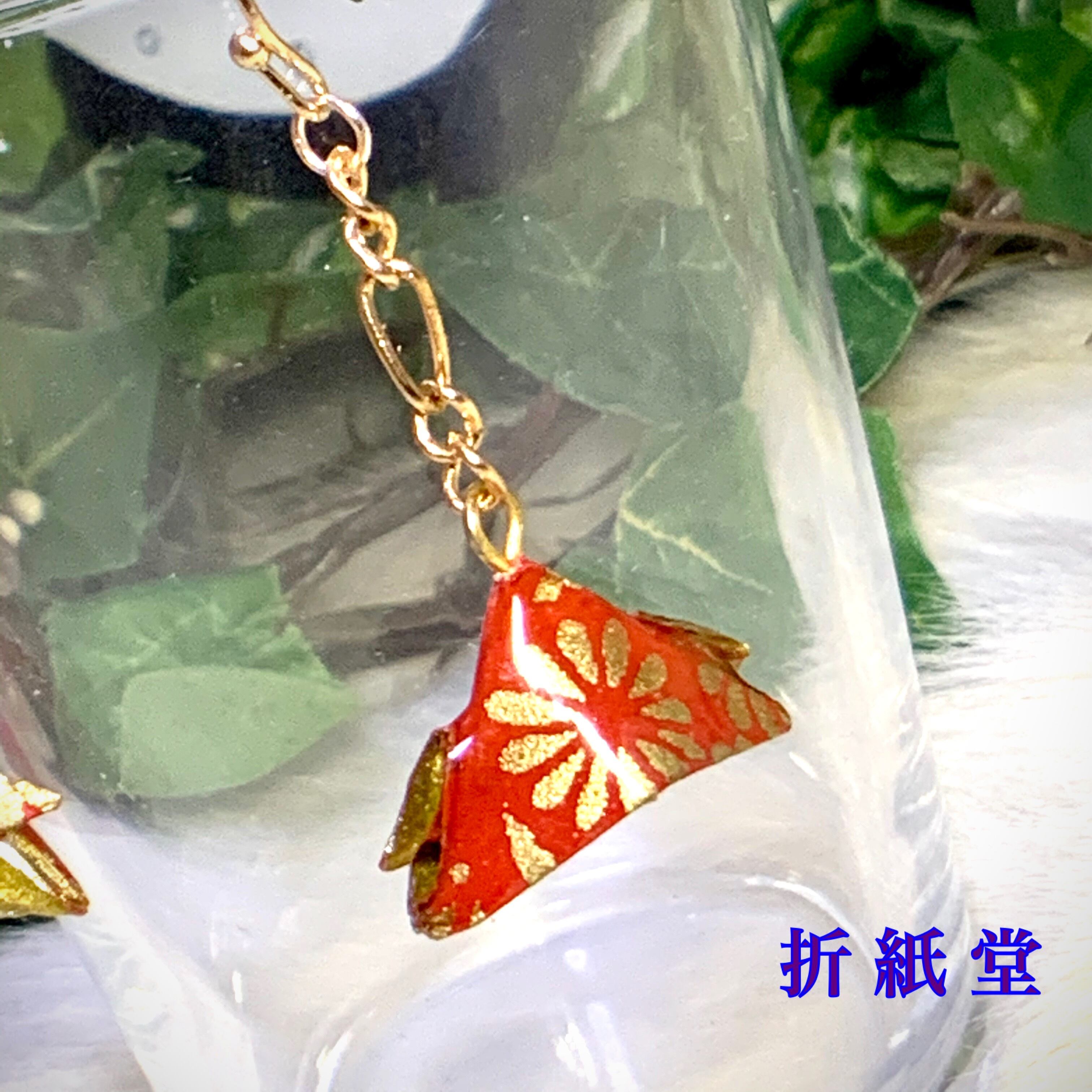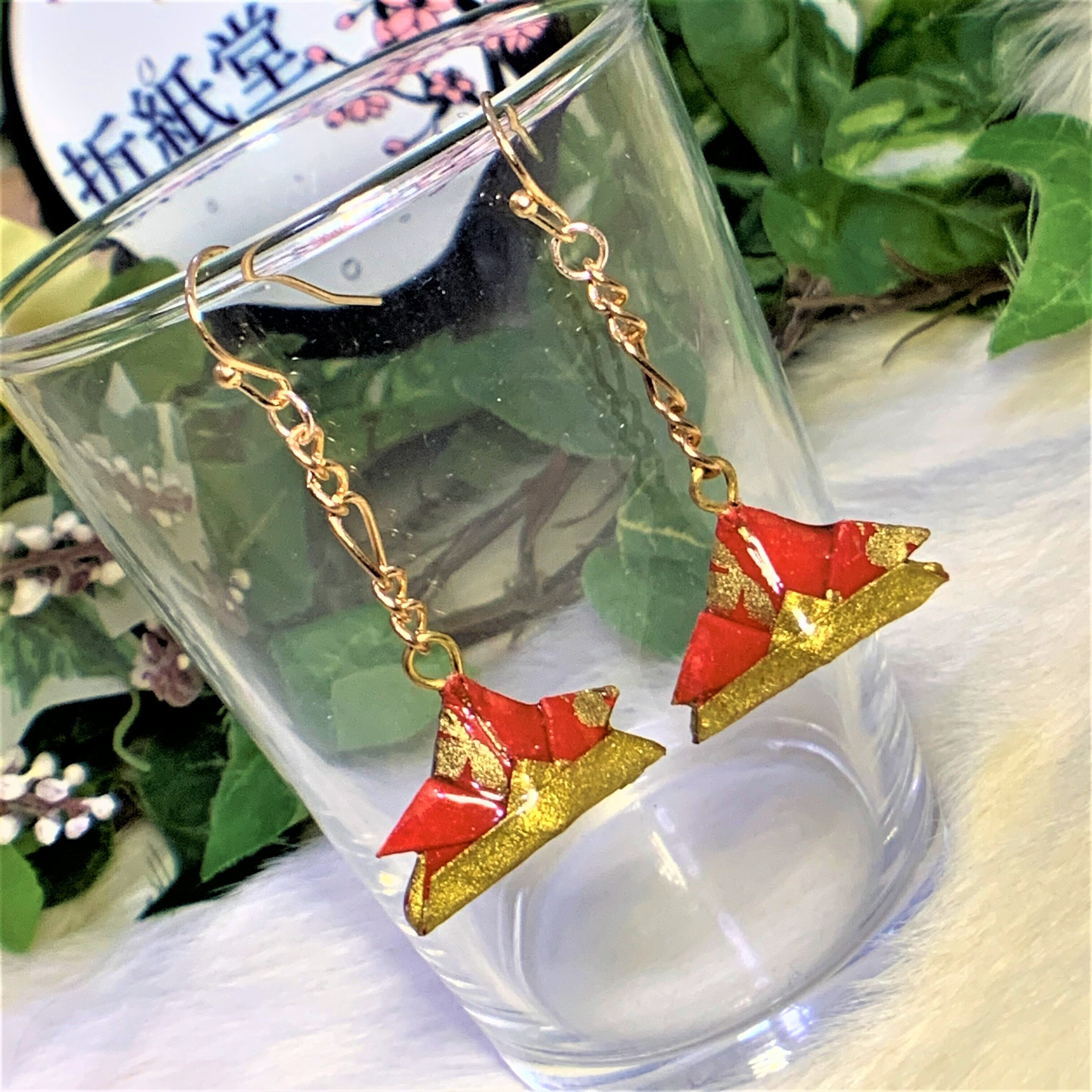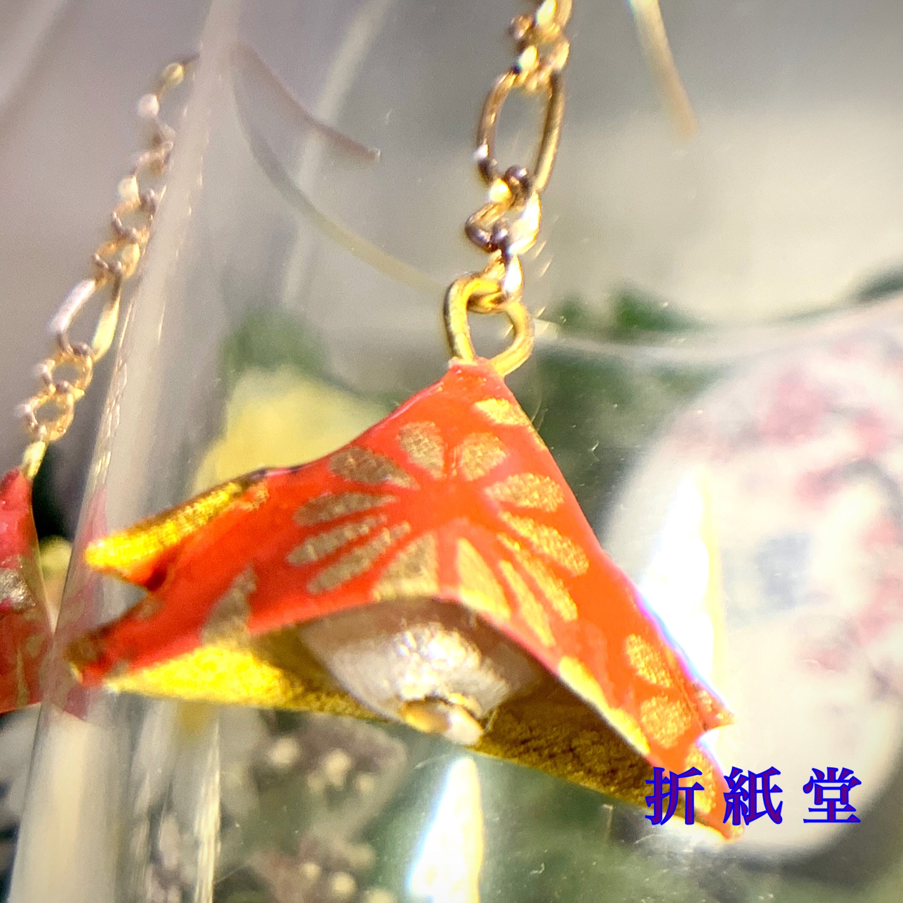 和紙・千代紙で折った兜(かぶと)のピアス・イヤリングです。