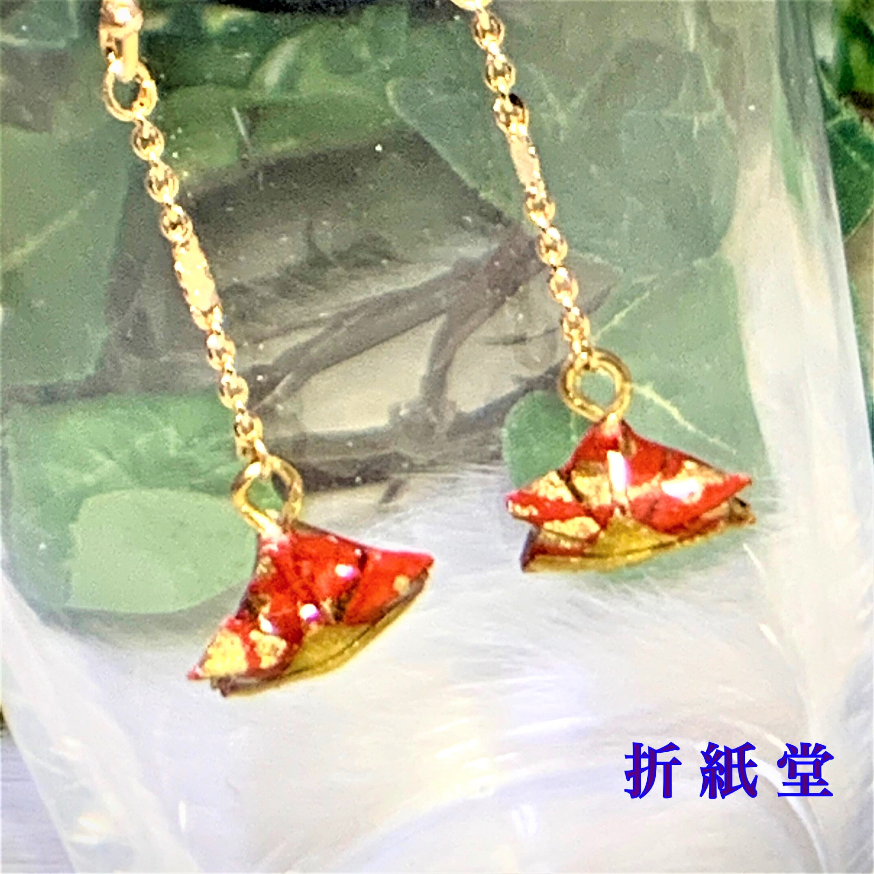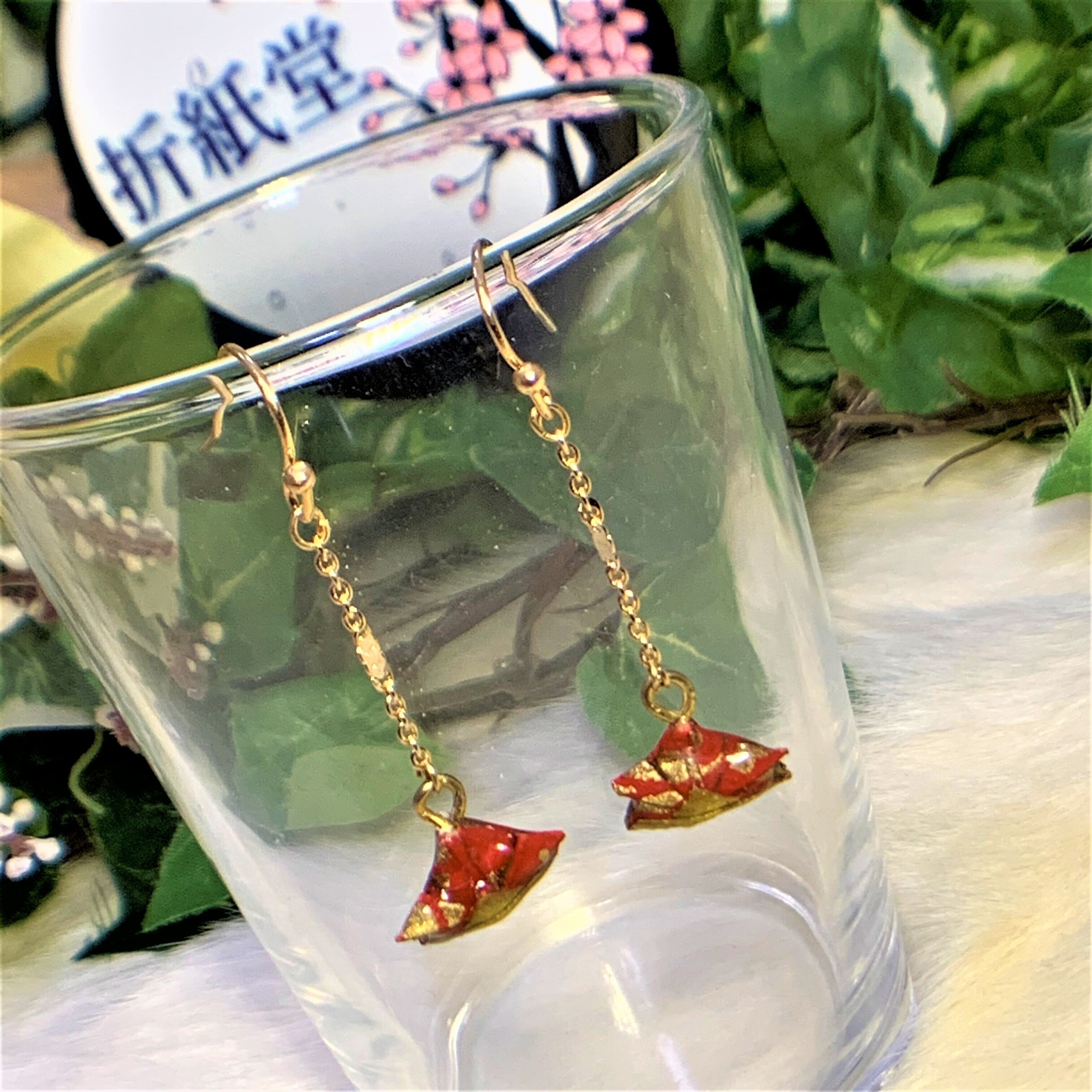 和紙・千代紙で折った兜(かぶと)のピアス・イヤリングです。