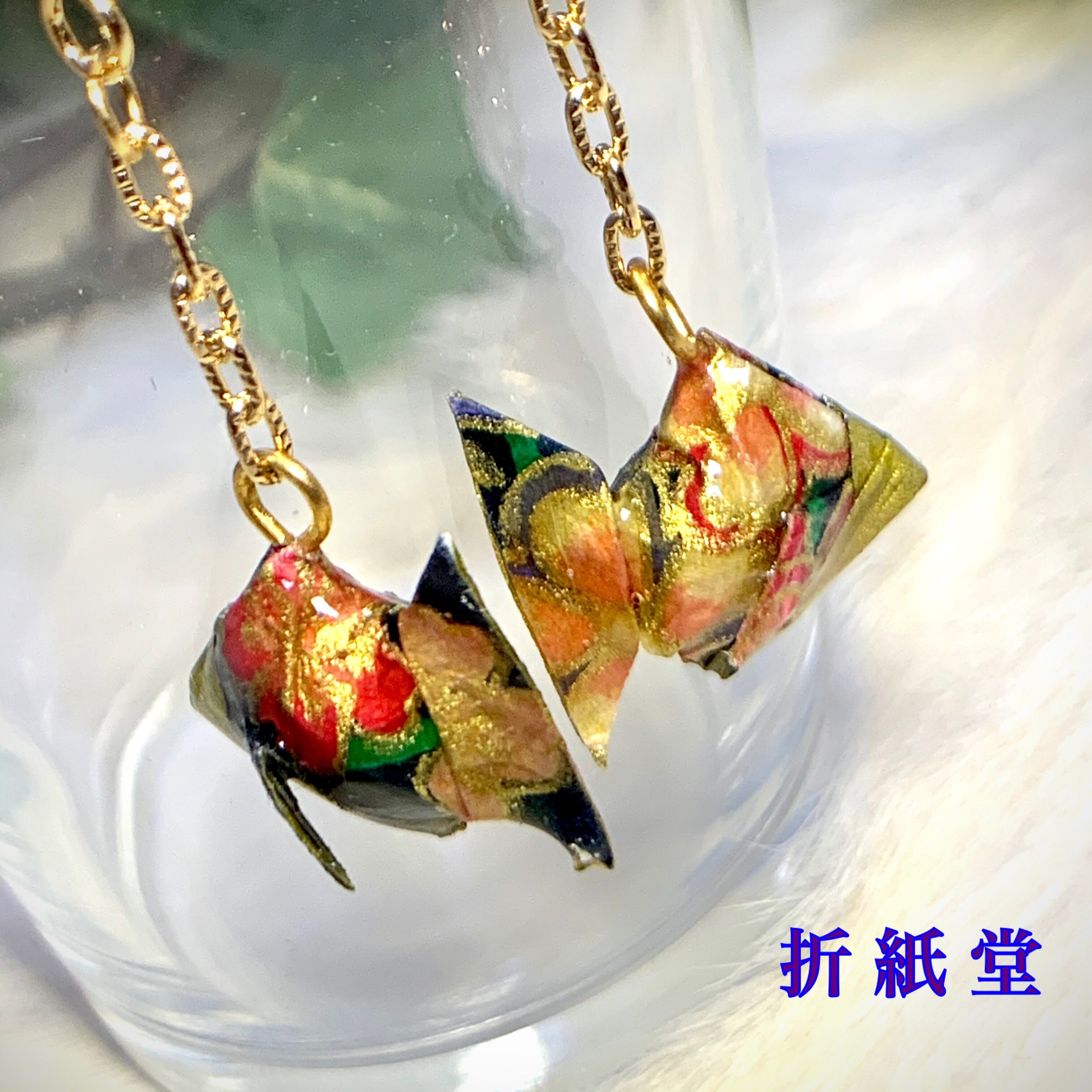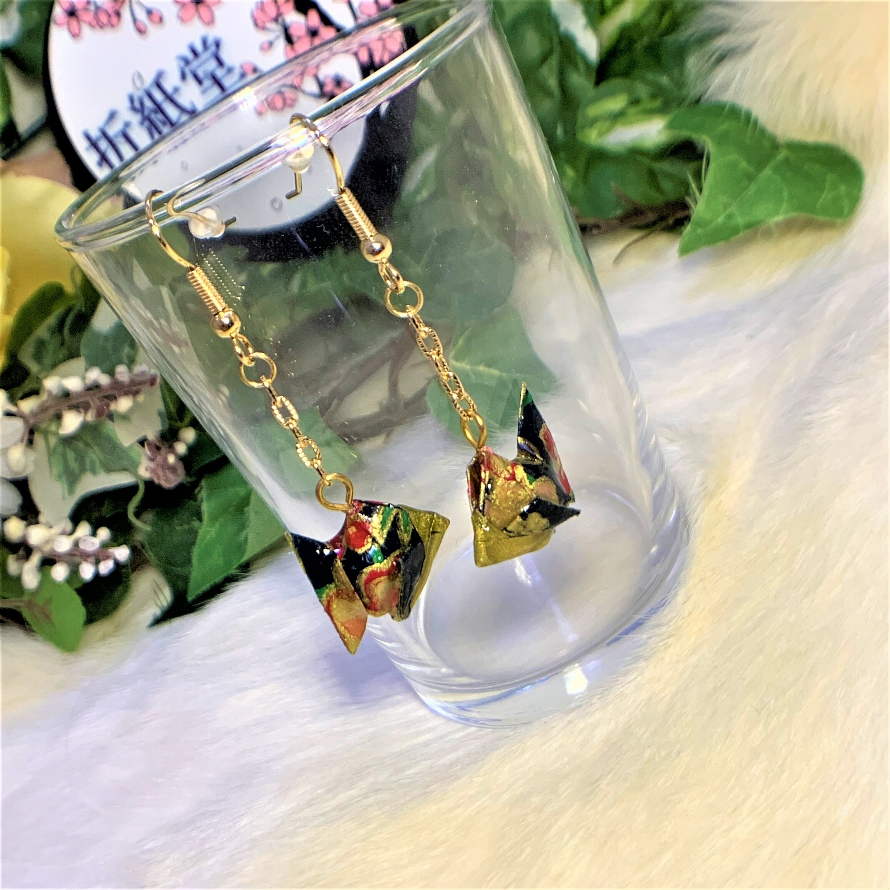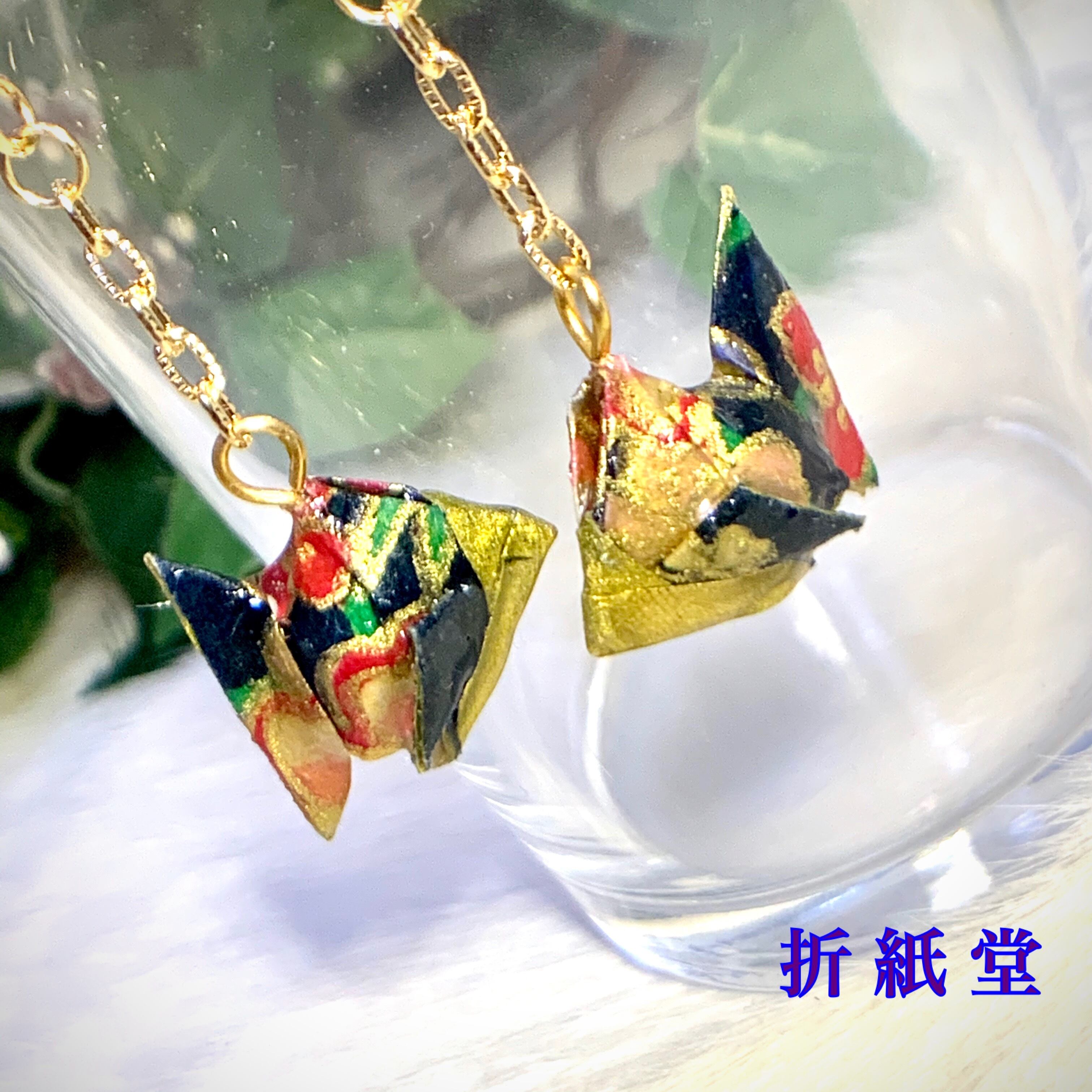 和紙・千代紙で折った金魚のピアス・イヤリングです。