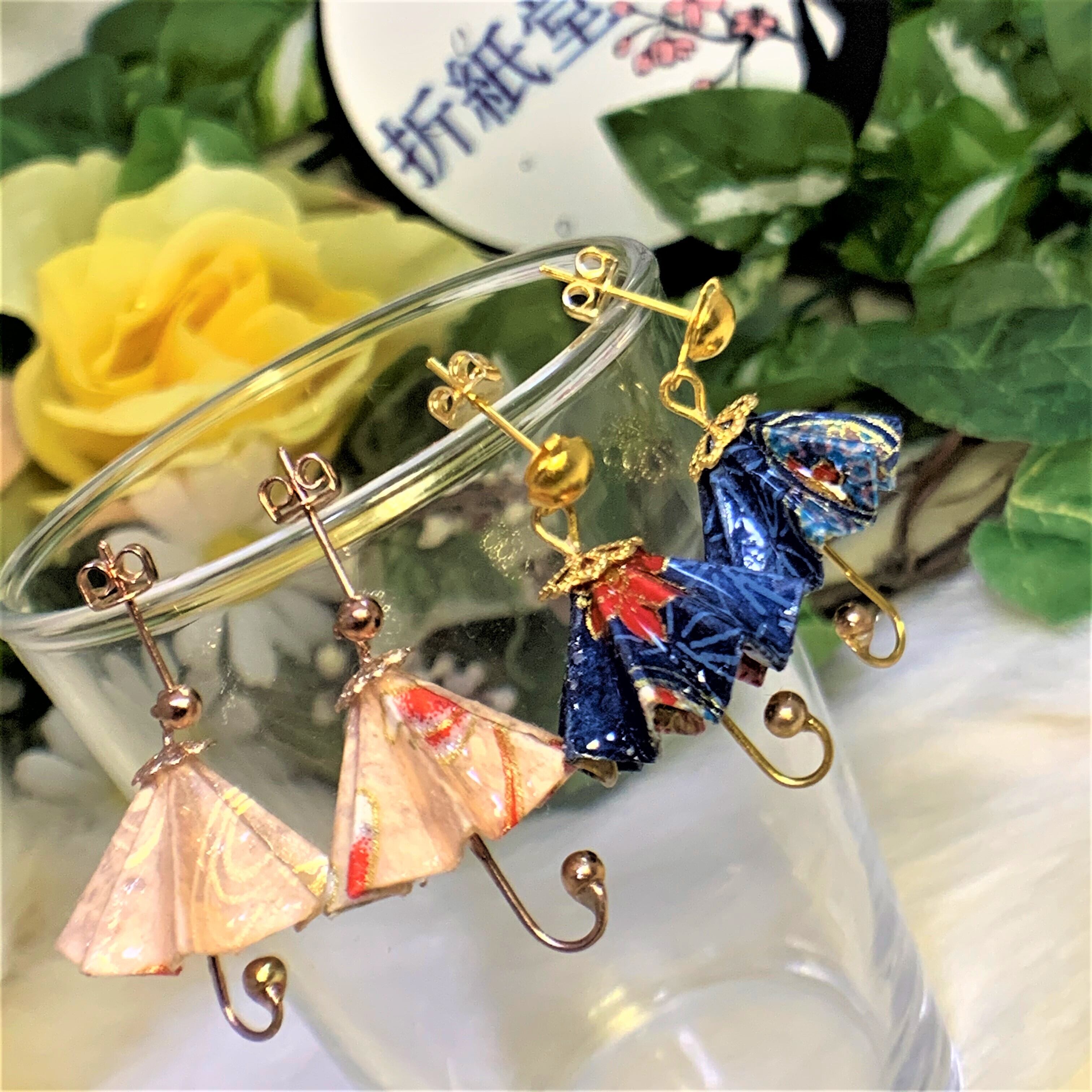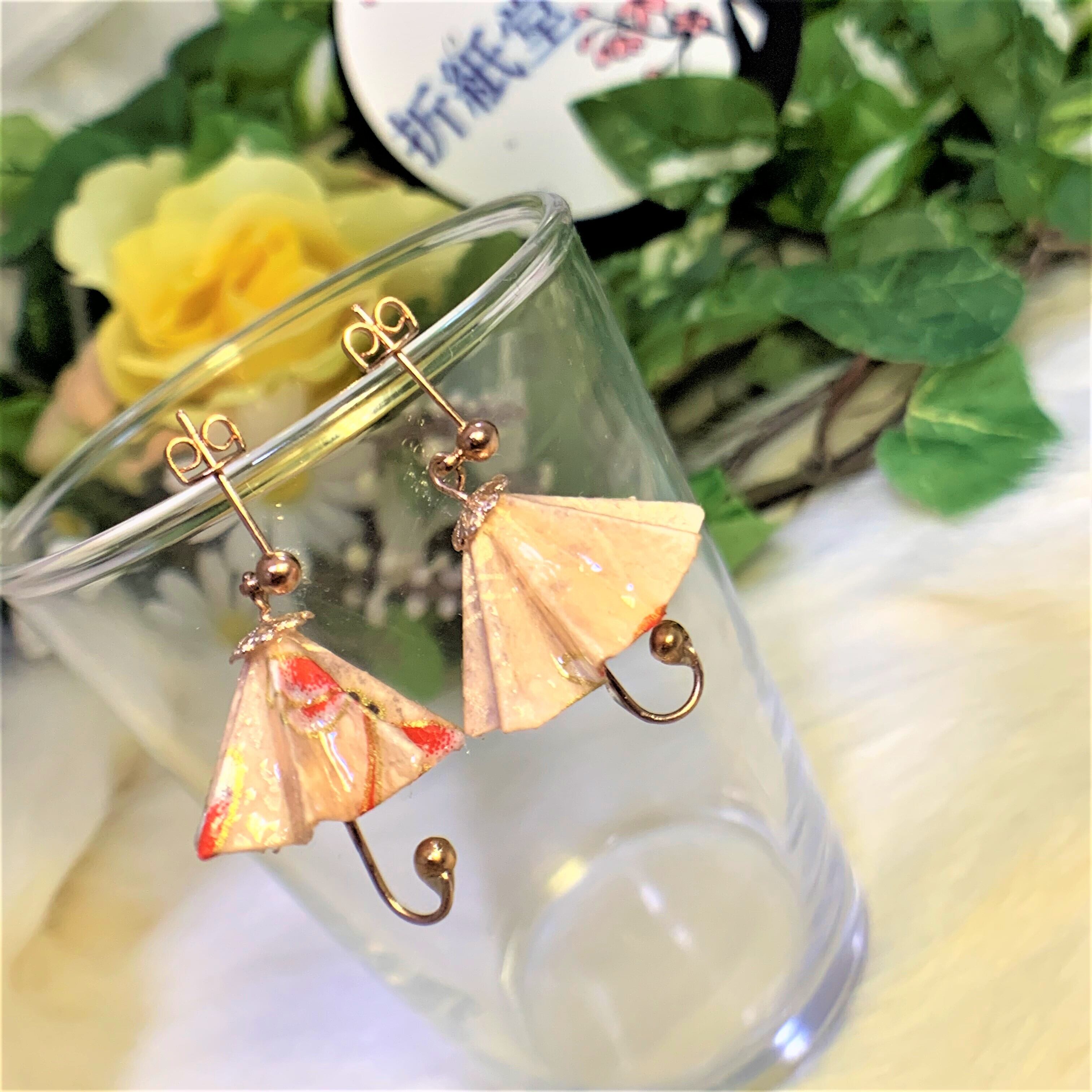 和紙・千代紙で折った傘のピアス・イヤリングです。